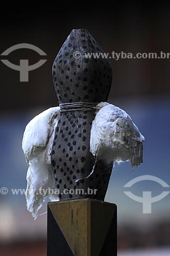 Assunto: Detalhe da pomba no mastro central do pátio do xamanismo para a cerimônia do Turé para receber os Karuãna, espíritos do outro mundo - Povos indígenas do Oiapoque, vivem na fronteira do Brasil com a Guiana Francesa: Karipuna; Galibi; Galibi-marworno; Palikur - Ambientação no Museu do Índio - Uso educacional / Local: Botafogo - Rio de Janeiro - Rio de Janeiro - Brasil / Data: 06/2009