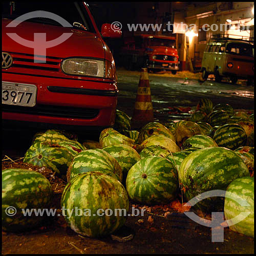 Assunto: Mercado Municipal de São Paulo - desperdício - melancias jogadas no chão - SP - Brasil (2004) / Local: São Paulo - São Paulo - Brasil