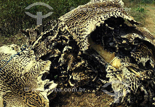 Assunto: Peles de onça - apreensão IBAMA / Local: Cuiabá - Mato Grosso (MT) - Brasil / Data: 1985