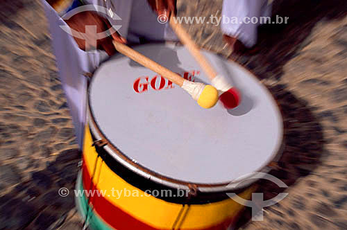 Assunto: Instrumento de percussão - Detalhe de mãos tocando surdo - Olodum - Salvador - BA - Brasil / Local: Salvador - Bahia - Brasil