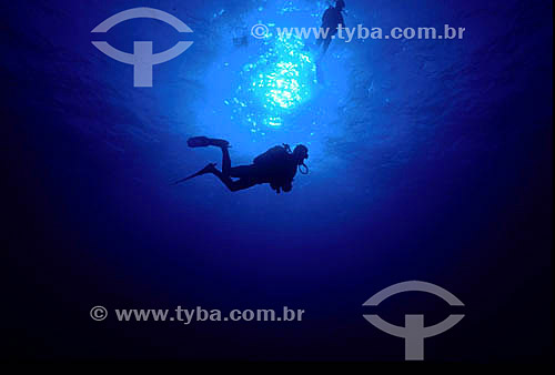 Assunto: Silhuetas de mergulhadores no fundo do mar