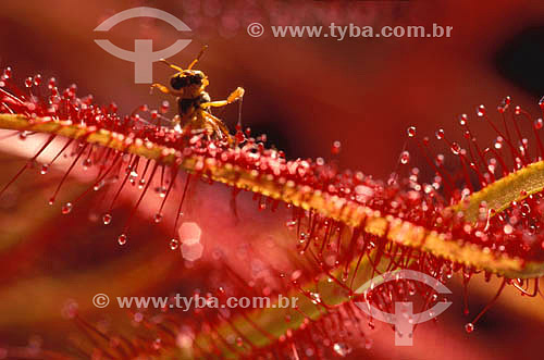 Assunto: Drosera (Drosera capensis) - planta carnívora com uma abelha / Local: / Data: 1995