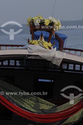[+] transporte, [+] barco, [+] embarcação, [+] imagem religiosa, [+] religiosidade, [+] religião, [+] imagem, [+] rede, [+] preguiça, [+] Círio de Nazaré, [+] nossa senhora de nazaré, [+] descanso, [+] Nazaré, [+] cor