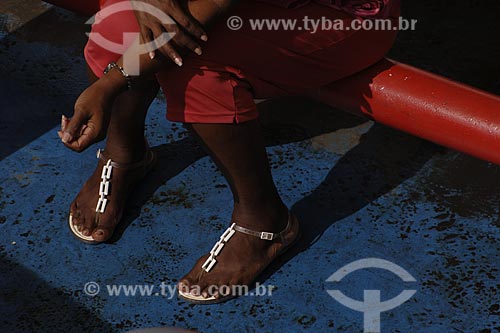 [+] pessoa, [+] adulto, [+] mulher, [+] transporte, [+] passageiro, [+] sandália, [+] Bahia, [+] pé, [+] balsa, [+] Nazaré das Farinhas, [+] cor