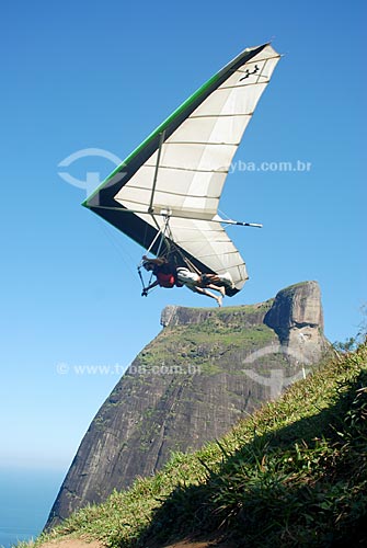 Assunto: Salto de Asa Delta com Pedra da Gávea ao fundo / Local: Pedra Bonita, Rio de Janeiro - RJ / Data: Agosto de 2009