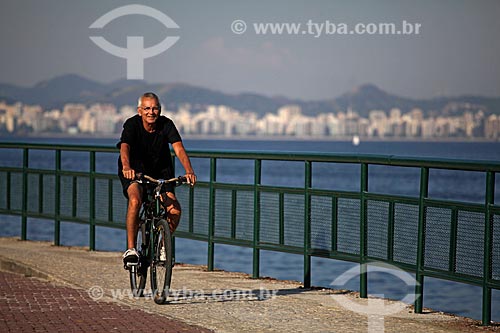 Assunto: Homem andando de bicicleta no calçadão da Praia do Flamengo / Local: Rio de Janeiro - RJ - Brasil / Data: 23/02/2010