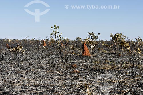 Assunto: Vegetação formada por arbustos no cerrado brasileiro - denominado campo sujo - após queimada / Local: Parque Nacional das Emas - Goiás (GO) - Brasil / Data: 21/10/2006