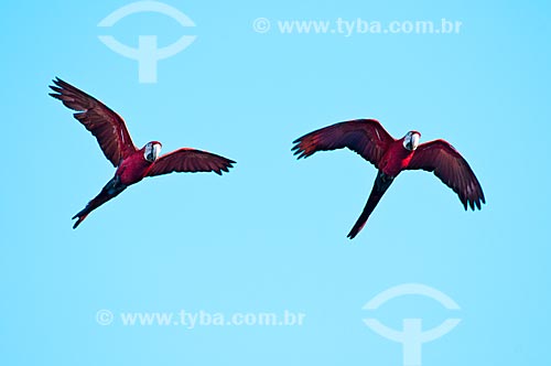 Assunto: Arara-vermelha-grande (Ara chloropterus) voando / Local: Jardim - Mato Grosso do Sul (MS) - Brasil / Data: 10/2010