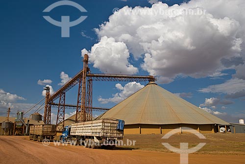 [+] agricultura, [+] grão, [+] Agroindústria, [+] agronegócio, [+] Região Centro-Oeste, [+] armazém, [+] estrutura metálica, [+] caminhão, [+] silo, [+] armazenagem, [+] tubo, [+] tubulação, [+] cor