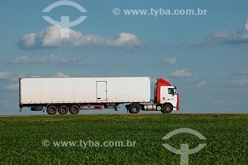Assunto: Caminhão frigorífico passando em plantação de soja - Trecho da Rodovia BR - 153 / Local: Rondonópolis - Mato Grosso (MT) - Brasil / Data: 12/2011