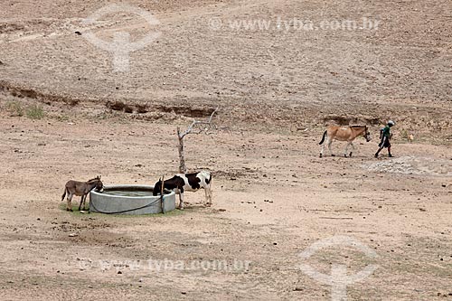 Assunto: Animais bebendo água em um reservatório de água no período da seca no Sítio Pesqueira Velha / Local: Próximo à Arcoverde - Pernambuco (PE) - Brasil / Data: 01/2013