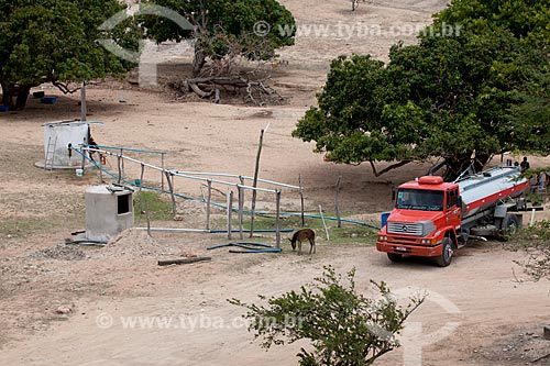 Assunto: Caminhão pipa abastecendo um reservatório de água no período da seca / Local: Próximo à Arcoverde - Pernambuco (PE) - Brasil / Data: 01/2013