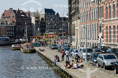 Assunto: População tomando sol na beira de canal no centro da cidade / Local: Amsterdam - Holanda - Europa / Data: 05/2012