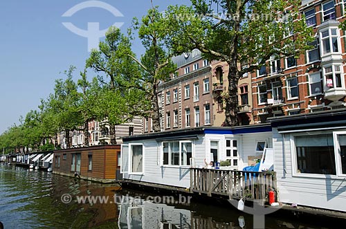 Assunto: Canal boats - também conhecidos como Home boats (barcos utilizados como moradia permanente ou temporária) - nas margens dos canais de Amsterdam / Local: Amsterdam - Holanda - Europa / Data: 05/2012