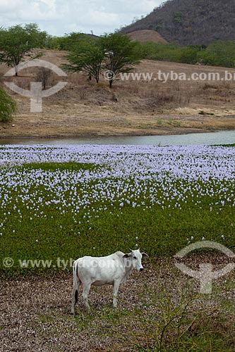 [+] agricultura, [+] agronegócio, [+] natureza, [+] boi, [+] bovino, [+] ruminante, [+] vaca, [+] gado, [+] vegetação, [+] agropecuária, [+] planta, [+] criação animal, [+] criação de gado, [+] pecuária, [+] planta aquática, [+] Paraíba, [+] Região Nordeste, [+] Aguapé, [+] açude, [+] Eichornia crassipes, [+] cor, [+] árvore