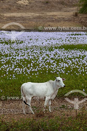 [+] agricultura, [+] agronegócio, [+] natureza, [+] boi, [+] bovino, [+] ruminante, [+] vaca, [+] gado, [+] vegetação, [+] agropecuária, [+] planta, [+] criação animal, [+] criação de gado, [+] pecuária, [+] planta aquática, [+] Paraíba, [+] Região Nordeste, [+] Aguapé, [+] açude, [+] Eichornia crassipes, [+] cor, [+] árvore