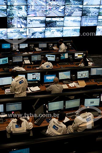 [+] trabalhador, [+] Região Sudeste, [+] uniforme, [+] luz, [+] iluminação, [+] luz elétrica, [+] tráfego, [+] trânsito, [+] tecnologia, [+] computador, [+] informática, [+] controle, [+] painel, [+] monitoramento, [+] monitor, [+] centro de controle, [+] monitorando, [+] serviço público, [+] cor