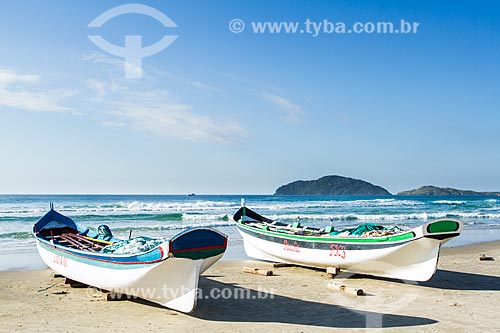 Assunto: Barcos de pesca na areia na Praia do Santinho / Local: Florianópolis - Santa Catarina (SC) - Brasil / Data: 06/2013