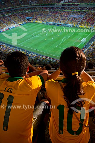 Assunto: Crianças assistindo o jogo entre Brasil x Japão - pela abertura da Copa das Confederações - no Estádio Nacional de Brasília Mané Garrincha (1974) / Local: Brasília - Distrito Federal (DF) - Brasil / Data: 06/2013