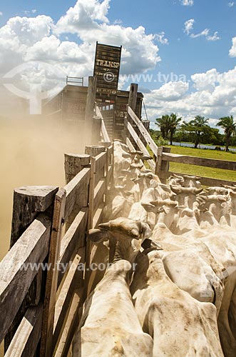 Assunto: Gado sendo transportado por caminhão próximo ao pantanal do Rio Abobral / Local: Mato Grosso do Sul (MS) - Brasil / Data: 11/2011