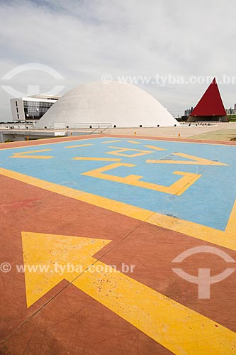 Assunto: Heliponto com a Biblioteca do Centro Cultural Oscar Niemeyer, Palácio da Música Belkiss Spenzièri e o Monumento aos Direitos Humanos ao fundo / Local: Goiânia - Goiás (GO) - Brasil / Data: 05/2014