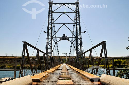 Assunto: Ponte Pênsil Affonso Penna (1909) sobre o Rio Paranaíba - divisa entre as cidade de Itumbiara (GO) e Araporã (MG) / Local: Itumbiara - Goiás (GO) - Brasil / Data: 08/2014