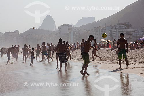 Assunto: Pessoas jogando futebol na orla da Praia do Leme com Morro Dois Irmãos e a Pedra da Gávea ao fundo / Local: Leme - Rio de Janeiro - Rio de Janeiro (RJ) - Brasil / Data: 11/2014