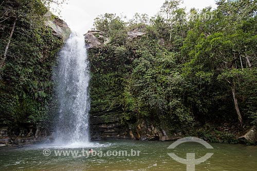 Assunto: Banhista na Cachoeira do Abade no Parque Estadual da Serra dos Pireneus / Local: Pirenópolis - Goiás (GO) - Brasil / Data: 05/2015