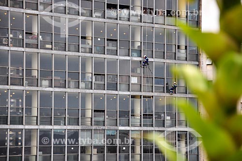 Assunto: Homens limpando vidros do Edifício Gustavo Capanema (1945) - antigo Ministério da Educação, atual sede do Ministério da Cultura no Rio de Janeiro / Local: Centro - Rio de Janeiro - Rio de Janeiro (RJ) - Brasil / Data: 11/2011