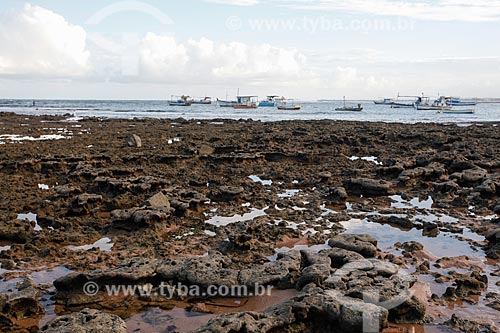[+] natureza, [+] transporte, [+] infraestrutura, [+] turismo, [+] barco, [+] ancorado, [+] atracado, [+] beira-mar, [+] embarcação, [+] litoral, [+] areia, [+] mar, [+] praia, [+] traineira, [+] orla, [+] acidente geográfico, [+] transporte marítimo, [+] Bahia, [+] Região Nordeste, [+] Praia do Forte, [+] arrecife, [+] recife de coral, [+] pesqueiro, [+] maré baixa, [+] Costa dos Coqueiros, [+] Praia do Portinho