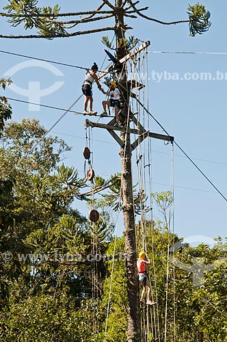 Assunto: Jovens praticando arvorismo / Local: Mirantão - Bocaina de Minas - Minas Gerais (MG) - Brasil / Data: 07/2015