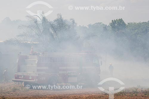 Assunto: Caminhão dos Bombeiros combatendo incêndio às margens da Avenida Perimetral Norte (GO-070) durante o período de seca / Local: Goiânia - Goiás (GO) - Brasil / Data: 09/2016