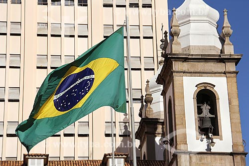 Assunto: Detalhe da Bandeira do Brasil hasteada em frente à Igreja de São José (1816) / Local: Centro - Rio de Janeiro - Rio de Janeiro (RJ) - Brasil / Data: 06/2015