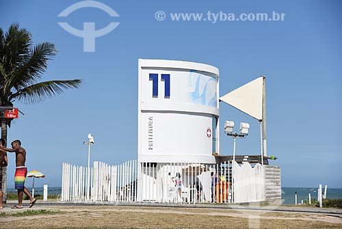 [+] gente, [+] pessoa, [+] Região Sudeste, [+] natureza, [+] turismo, [+] beira-mar, [+] litoral, [+] zona sul, [+] praia, [+] orla, [+] acidente geográfico, [+] banhista, [+] Construção civil, [+] praia do Leblon, [+] calçadão, [+] salvamento, [+] salva-vidas, [+] guarita de salva-vidas, [+] posto de salva-vidas, [+] equipamento