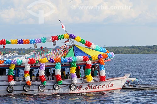 Assunto: Barco decorado durante a procissão fluvial em celebração à São Pedro no Rio Negro / Local: Manaus - Amazonas (AM) - Brasil / Data: 06/2017