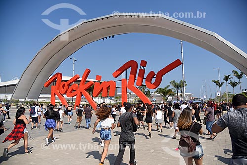 Assunto: Letreiro com os dizeres: Rock In Rio na entrada do Rock in Rio 2017 - Parque Olímpico Rio 2016 - com público chegando / Local: Barra da Tijuca - Rio de Janeiro - Rio de Janeiro (RJ) - Brasil / Data: 09/2017