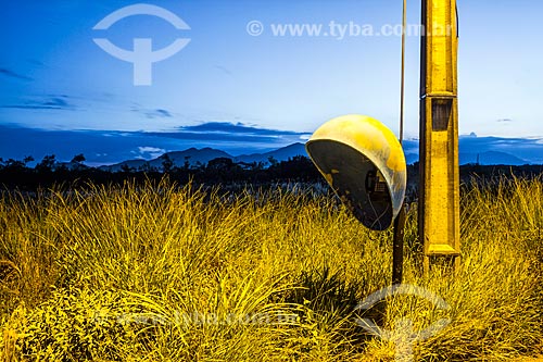 Assunto: Telefone público em terreno baldio ao anoitecer / Local: Florianópolis - Santa Catarina (SC) - Brasil / Data: 03/2018