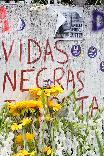 Assunto: Homenagens marcando 1 mês do assassinato da Vereadora Marielle Franco na Rua João Paulo I - onde ela foi assassinada a tiros em 14 de março de 2018 / Local: Estácio - Rio de Janeiro - Rio de Janeiro (RJ) - Brasil / Data: 04/2018