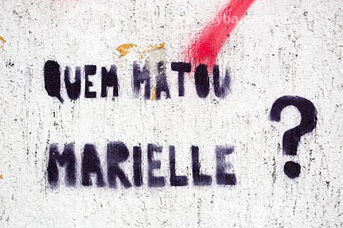 Assunto: Detalhe de mensagens de protesto marcando 1 mês do assassinato da Vereadora Marielle Franco na Rua João Paulo I - onde ela foi assassinada a tiros em 14 de março de 2018 / Local: Estácio - Rio de Janeiro - Rio de Janeiro (RJ) - Brasil / Data: 04/2018