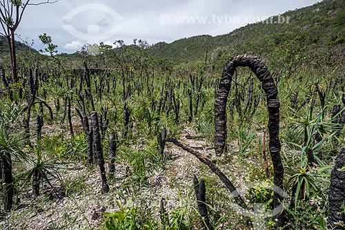 Assunto: Detalhe de canela-de-ema (Vellozia squamata) - vegetação típica do cerrado - na Chapada dos Veadeiros / Local: Alto Paraíso de Goiás - Goiás (GO) - Brasil / Data: 04/2018