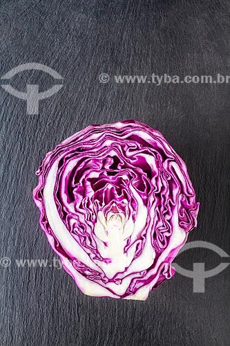 Assunto: Detalhe de repolho roxo ao meio / Local: Estúdio - Brasil / Data: 04/2018