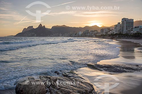 Assunto: Vista do pôr do sol a partir da Pedra do Arpoador com a Pedra da Gávea e o Morro Dois Irmãos ao fundo / Local: Ipanema - Rio de Janeiro - Rio de Janeiro (RJ) - Brasil / Data: 05/2018