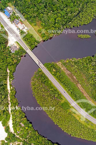 Assunto: Foto feita com drone da Rodovia Doutor Manuel Hipólito Rego (SP-055) com o Rio Itaguaré no Parque Estadual Restingas de Bertioga / Local: Bertioga - São Paulo (SP) - Brasil / Data: 03/2018