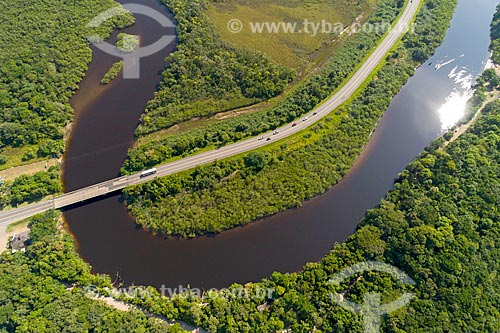 Assunto: Foto feita com drone da Rodovia Doutor Manuel Hipólito Rego (SP-055) com o Rio Itaguaré no Parque Estadual Restingas de Bertioga / Local: Bertioga - São Paulo (SP) - Brasil / Data: 03/2018