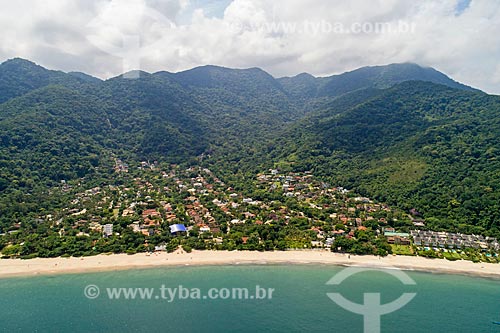 Assunto: Foto feita com drone da Praia do Toque-Toque Pequeno com o Núcleo São Sebastião do Parque Estadual da Serra do Mar ao fundo / Local: Calhetas - São Sebastião - São Paulo (SP) - Brasil / Data: 03/2018