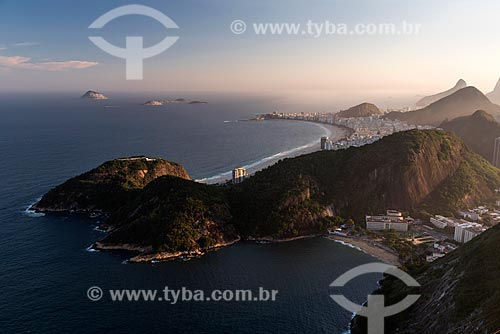 Assunto: Vista do Morro da Babilônia e da Praia Vermelha a partir do Pão de Açúcar durante o pôr do sol com a Praia de Copacabana ao fundo / Local: Urca - Rio de Janeiro - Rio de Janeiro (RJ) - Brasil / Data: 08/2018
