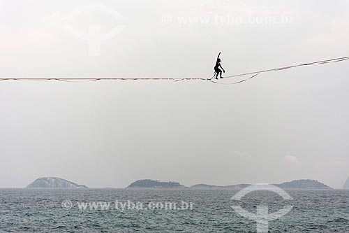 Assunto: Praticante de slackline na orla do Rio de Janeiro com o Monumento Natural das Ilhas Cagarras ao fundo / Local: Leblon - Rio de Janeiro - Rio de Janeiro (RJ) - Brasil / Data: 09/2018