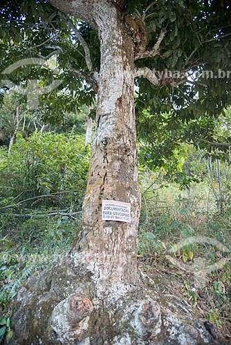 [+] serviço, [+] natureza, [+] placa, [+] letreiro, [+] vegetação, [+] tronco, [+] Mata Atlântica, [+] escrita, [+] Região Nordeste, [+] Ceará, [+] área verde, [+] publicidade, [+] letra, [+] propaganda, [+] anúncio, [+] palavra, [+] árvore