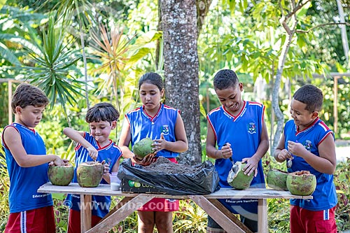 Assunto: Alunos da rede municipal de ensino cultivando hortaliças no Projeto Horta no Coco da Secretaria de Agricultura, Pecuária e Pesca da Prefeitura de Maricá / Local: Maricá - Rio de Janeiro (RJ) - Brasil / Data: 12/2018