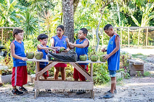 [+] gente, [+] pessoa, [+] Região Sudeste, [+] uniforme, [+] criança, [+] educação, [+] preservação ambiental, [+] Costa do Sol, [+] aluno, [+] estudante, [+] coco, [+] região dos lagos, [+] assistência, [+] assistência social, [+] serviço público, [+] promoção social, [+] educação ambiental, [+] Projeto Horta no Coco